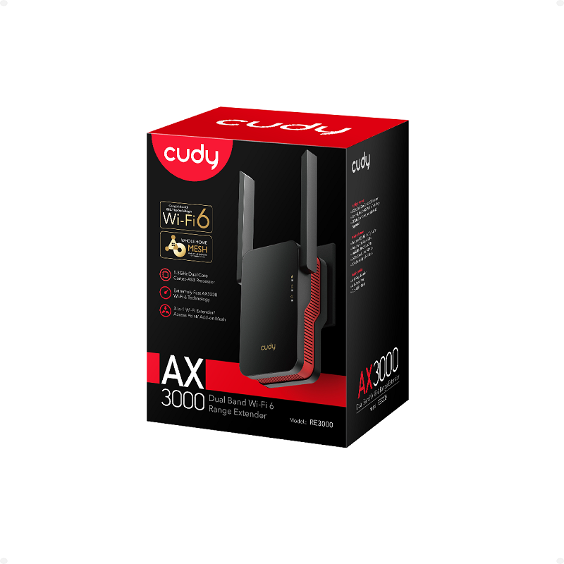 CUDY AX3000 Wi-Fi 6 Dual-Band Range Extender with 1x Gig Ethernet Port. Supports Mesh Repeater & AP Modes, WPS Button, Intelligent Signal Light, WPA3, LED Control, CUDY APP.