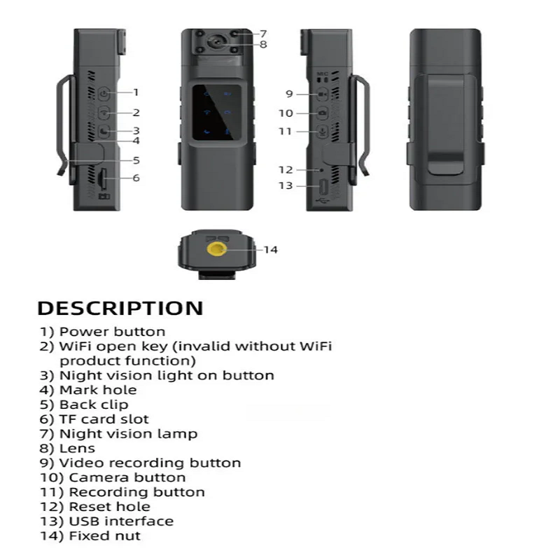 WIFI Hotspot Mini Body Camera 1080P Portable Digital Video Recorder with Night Vision and One-Touch Recording