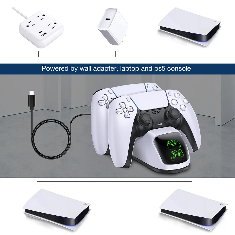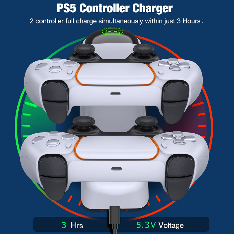 2. It can charge two PS5 controllers at the same time (90% of the charge is charged by quick charging mode, and the last 10% is charged by constant voltage trickling mode, which takes about 3 hours to fully charge).