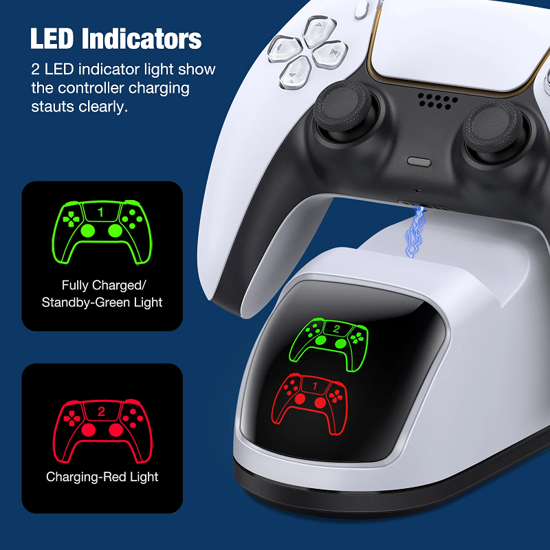 LED Indicator Light – The built-in LED indicator light provides visual feedback on the charging status, ensuring you know when your controllers are ready to play.