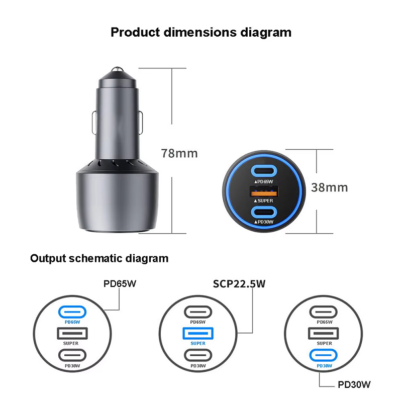– High-Power Fast Charging: Total output up to 125W, suitable for smartphones, tablets, and laptops.