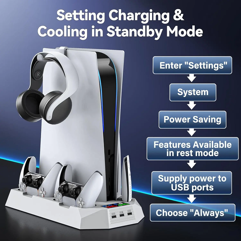 – Connect the USB charging cable to the USB port on the back of the PS5 console.