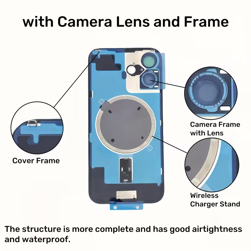 - Part includes MagSafe magnets, camera lens and back glass